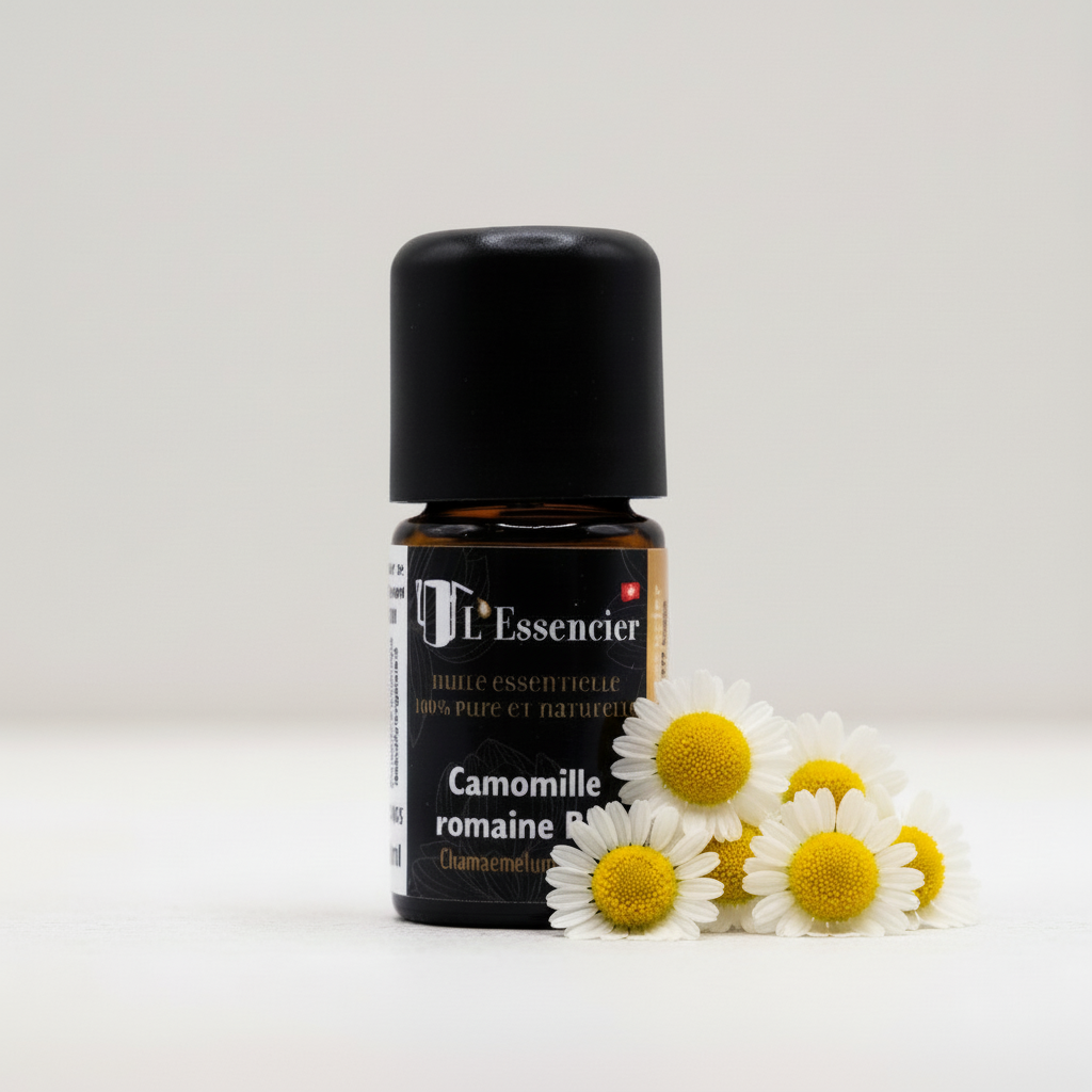 Appréciée pour son parfum floral doux et réconfortant, cette huile essentielle est largement utilisée en aromathérapie pour ses propriétés calmantes, anti-inflammatoires et équilibrantes. La camomille romaine est également reconnue pour ses bienfaits en soins personnels et en relaxation.