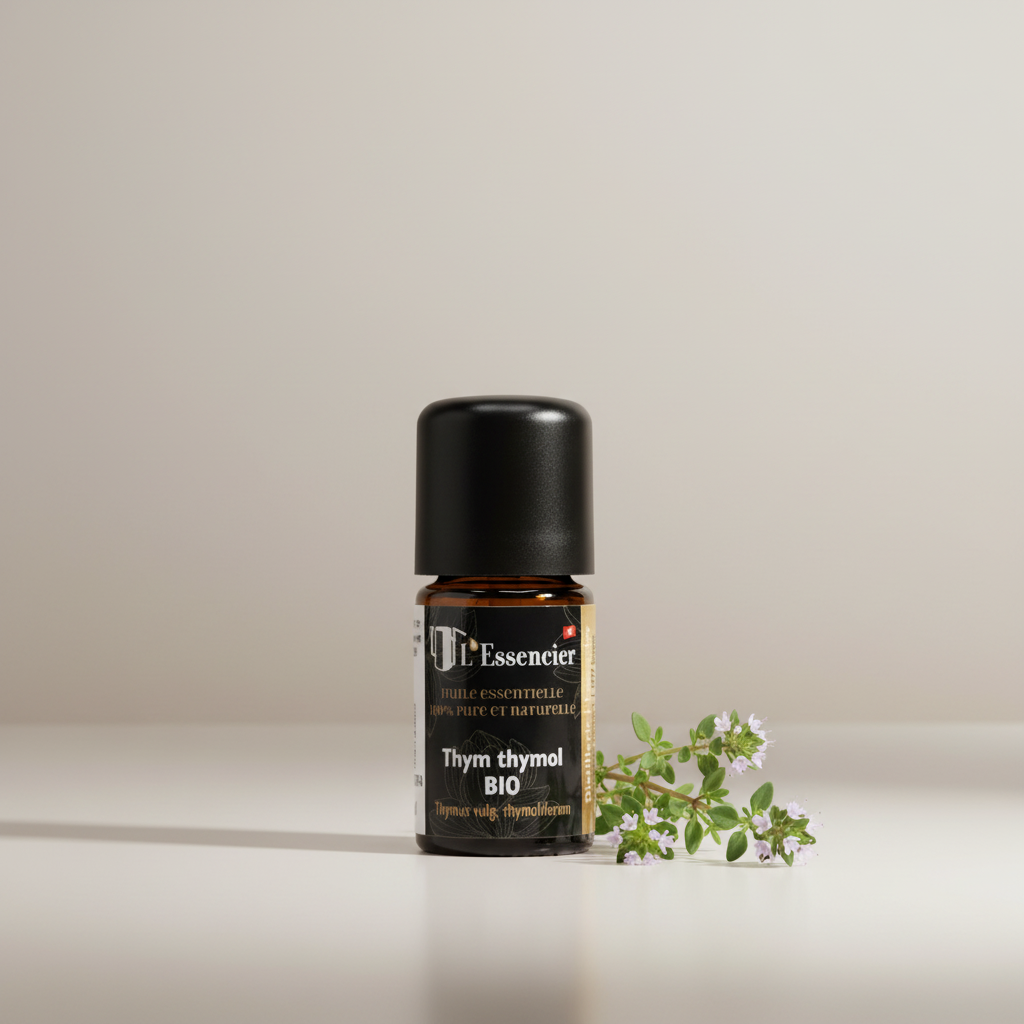Remarque : L'huile essentielle de Thym Thymol est particulièrement appréciée pour ses puissantes propriétés anti-infectieuses. Elle est idéale pour traiter les infections respiratoires. En raison de sa puissance, elle doit être utilisée avec précaution et toujours diluée.
