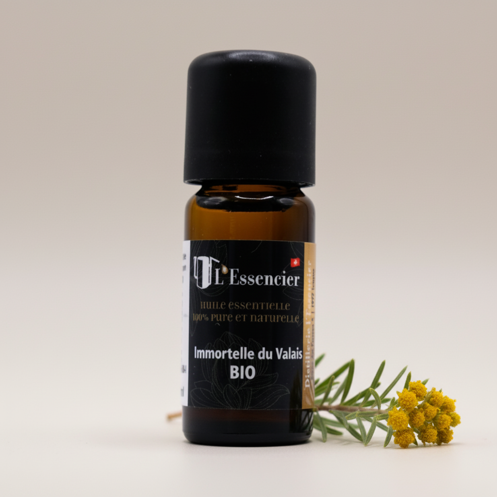 Remarque : L'huile essentielle d'Immortelle Corse est particulièrement appréciée pour ses propriétés anti-hématomes et régénérantes. Elle est idéale pour traiter les contusions, accélérer la cicatrisation des plaies et des cicatrices, et apaiser les inflammations. Utilisée en massage, elle soulage les douleurs musculaires et articulaires et favorise la résorption des bleus. En soin de la peau, elle aide à régénérer les tissus et à maintenir une peau saine et revitalisée.