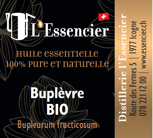 Particularité de la plante : Le Buplèvre ligneux (Bupleurum fruticosum) est une plante herbacée vivace originaire du bassin méditerranéen. Son huile essentielle est extraite par distillation à la vapeur d'eau de ses parties aériennes. Elle est connue pour ses propriétés détoxifiantes et hépatiques.