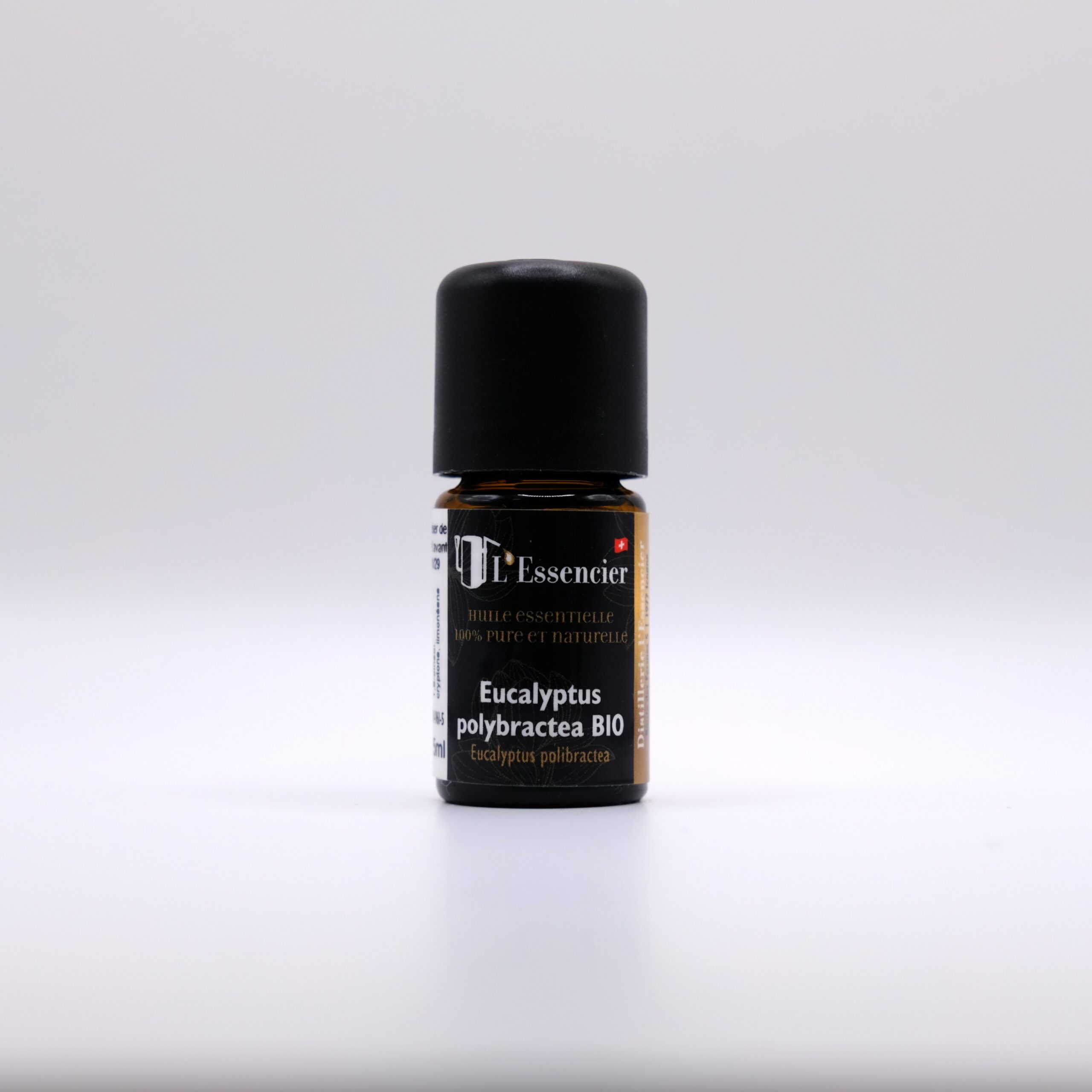 Remarque : L'huile essentielle d'Eucalyptus Polybractea est particulièrement appréciée pour ses propriétés expectorantes et antivirales. Elle est idéale pour dégager les voies respiratoires, soulager les infections respiratoires et stimuler le système immunitaire. Utilisée en diffusion, elle purifie l'air et aide à créer un environnement sain, particulièrement en période de froid. En soin personnel, elle favorise la détente respiratoire et apporte un soulagement rapide en cas de congestion nasale ou de toux.