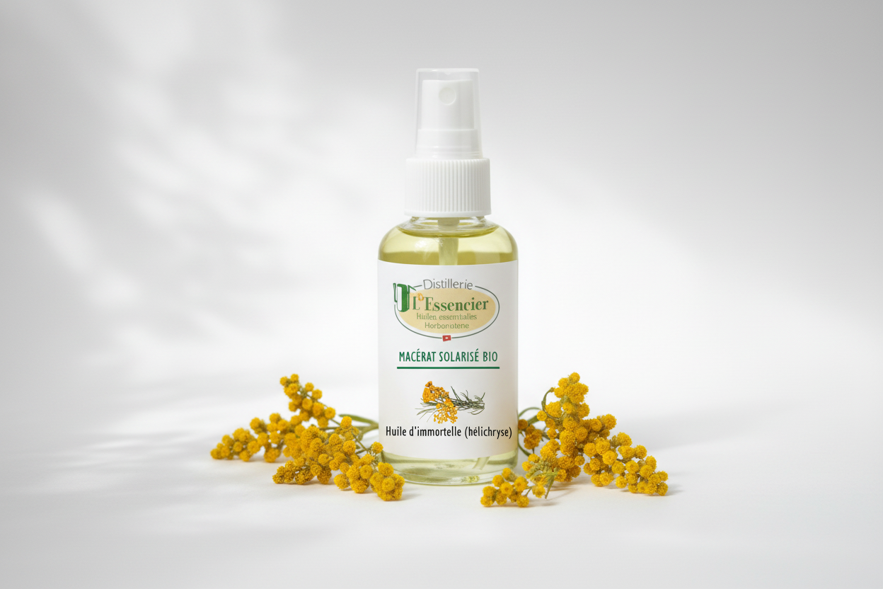 Obtenu par macération des fleurs d’immortelle dans des huiles végétales de qualité, ce macérat est reconnu pour ses vertus circulatoires. Il est particulièrement recommandé pour soutenir les zones sujettes aux rougeurs, aux tensions ou aux inconforts liés à la circulation.
