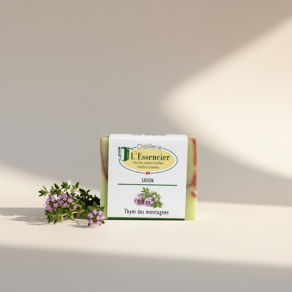 Découvrez notre savon solide au Thym des montagnes, fabriqué avec des huiles biologiques de qualité supérieure.
